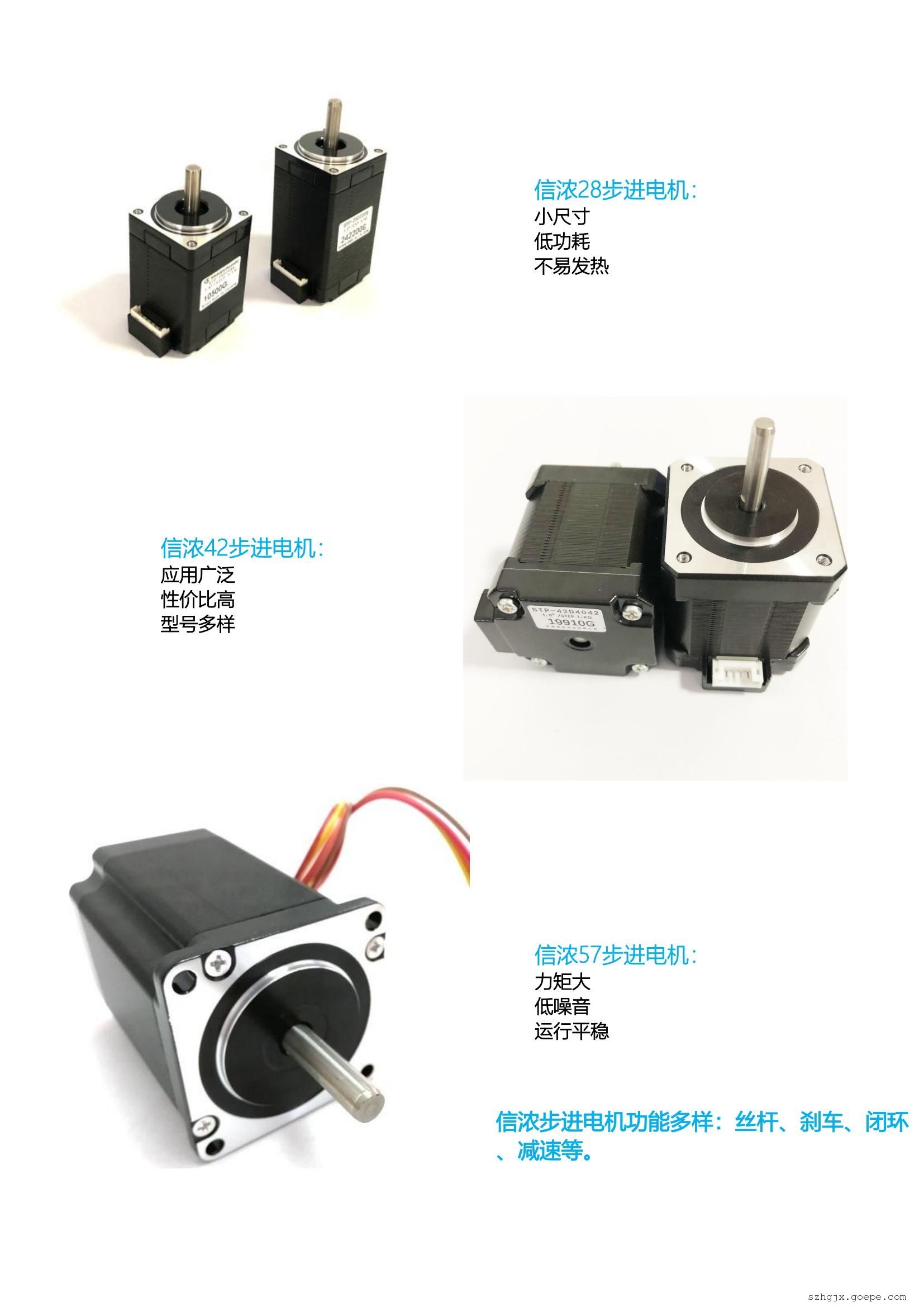 主要销售:信浓步进电机,步进马达驱动器,中空旋转平台,丝杆步进电机,减速步进马达,步进马达,齿轮箱步进电机,混合式步进电机,刹车步进电机,闭环步进电机,步进马达驱动器,步进电机驱动芯片、行星减速机等。