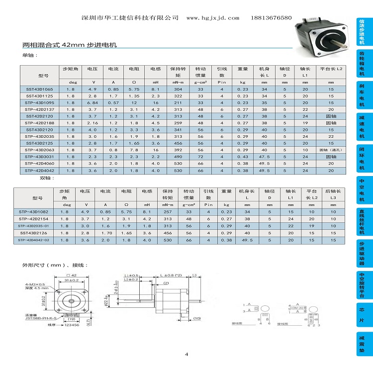 信浓SST43D系列两4线步进电机X是代表单轴和双轴 ,5代表单轴,6代表双轴